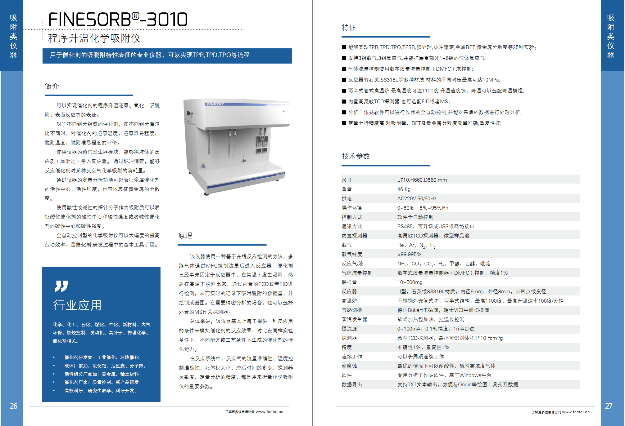全自動程序升溫化學吸附儀,TPR,TPD,TPO,TPSR等多種功能,可以實現(xiàn)最高1200度的多段程序升溫,內(nèi)置TCD或FID檢測器,全自動軟件控制,留有GC或MS接口。