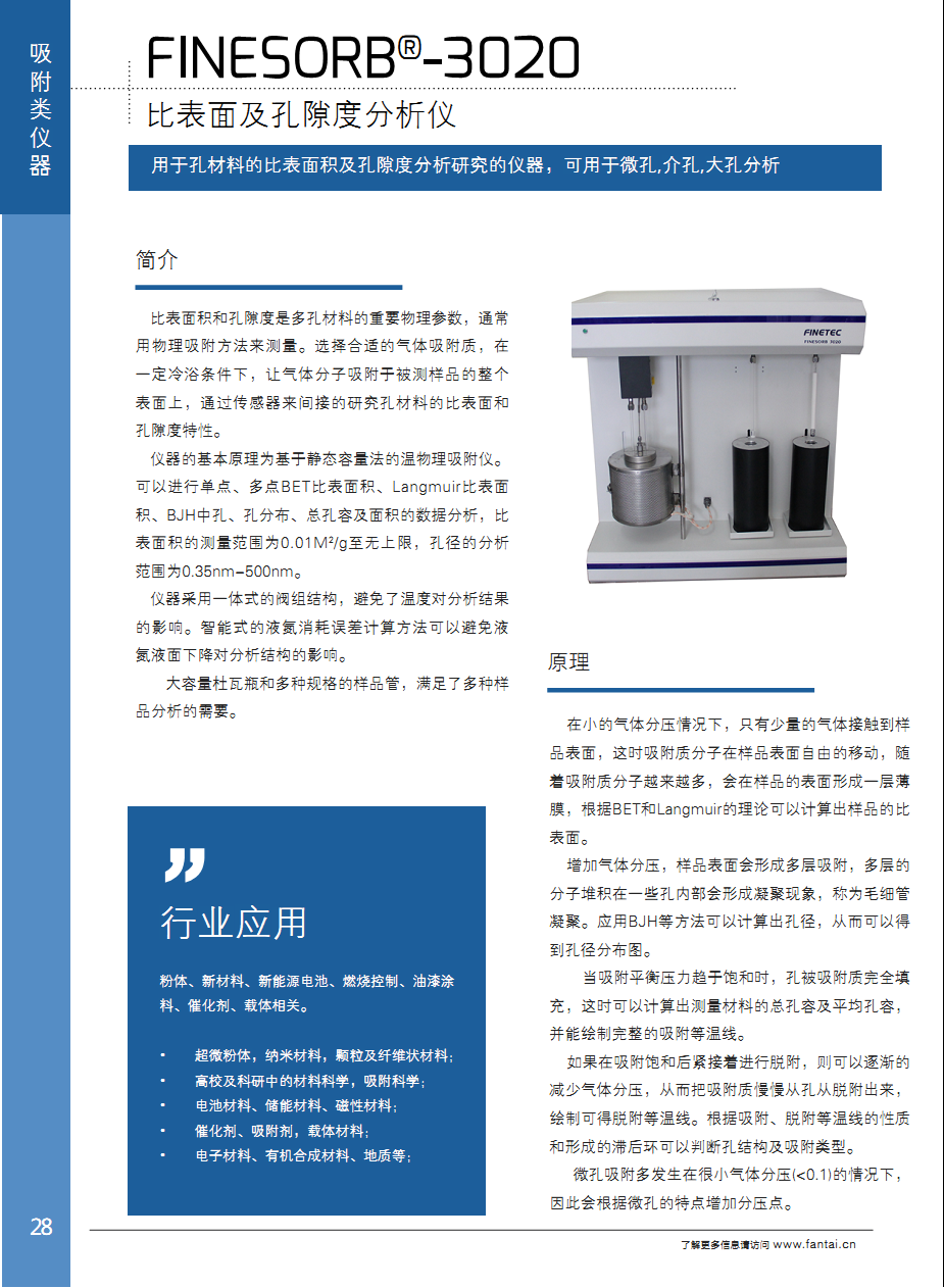 比表面及孔隙度分析儀,實(shí)現(xiàn)BET,BJH,HK,SF,DR,DA等分析方法,是分析介孔及微孔材料的重要儀器。